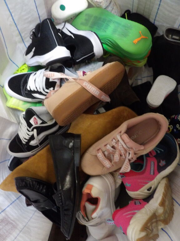 1/2 Palette de 65 paires de chaussures d'occasion, certaines neuves : Homme, Femme et enfant (divers gammes et marques ....)