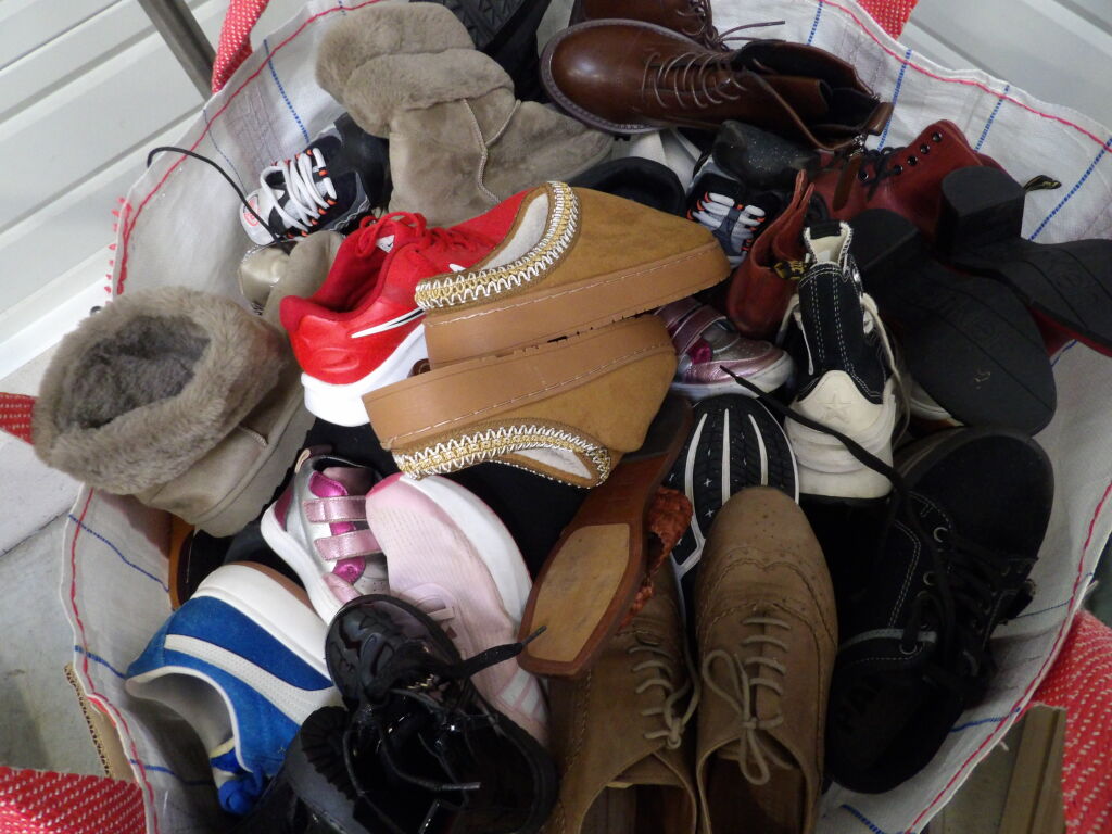 1/2 Palette de 80 paires de chaussures d'occasion, certaines neuves : Homme, Femme et enfant (divers gammes et marques ....)
