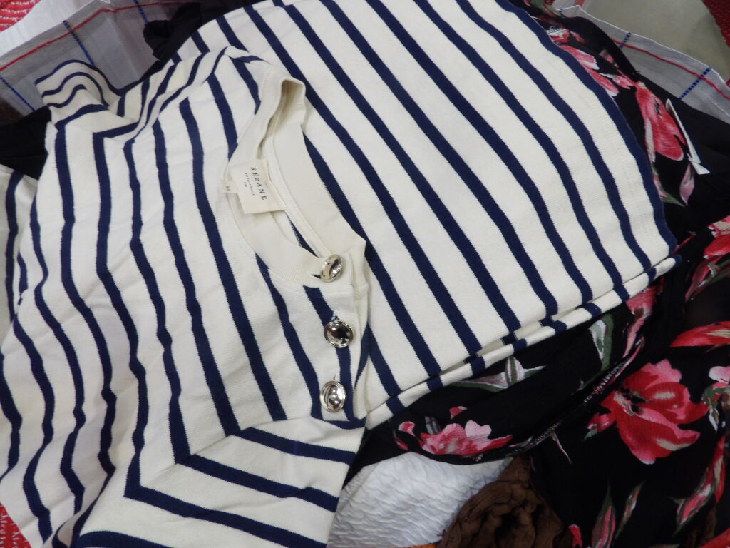 1/2 palette de 85 pièces de vêtements d'occasion et certains neufs : Femme, Enfant, Homme ( divers gammes et marques dont La petite etoile - Sézanne ...) - ATTENTION ce lot est d'occasion tous états et contient divers gammes donc de l'entrée type KIABI aussi. il n'est pas composé uniquement des marques citées.
