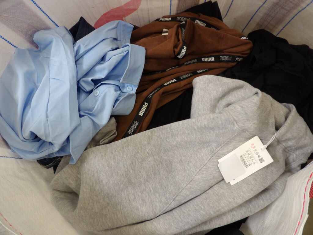 1/2 palette de 85 pièces de vêtements d'occasion et certains neufs : Femme, Enfant, Homme ( divers gammes et marques dont Sézanne - Claudie Pierlot...) - ATTENTION ce lot est d'occasion tous états et contient divers gammes donc de l'entrée type KIABI aussi. il n'est pas composé uniquement des marques citées.