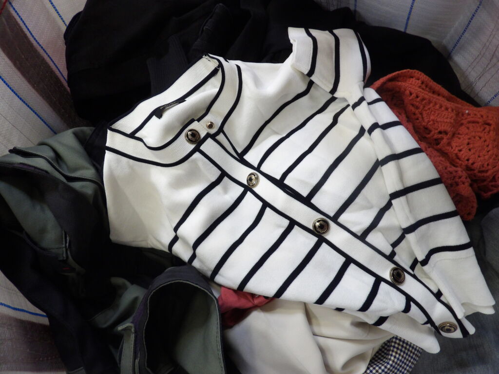 1/2 palette de 85 pièces de vêtements d'occasion et certains neufs : Femme, Enfant, Homme ( divers gammes et marques dont The kooples - La petitte etoile ...) - ATTENTION ce lot est d'occasion tous états et contient divers gammes donc de l'entrée type KIABI aussi. il n'est pas composé uniquement des marques citées.