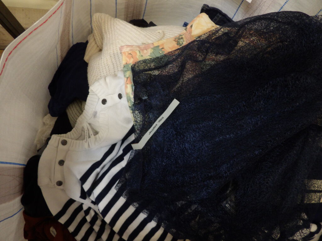 1/2 palette de 85 pièces de vêtements d'occasion et certains neufs : Femme, Enfant, Homme ( divers gammes et marques dont The Kooples Jeans - Ba&sh ...) - ATTENTION ce lot est d'occasion tous états et contient divers gammes donc de l'entrée type KIABI aussi. il n'est pas composé uniquement des marques citées.