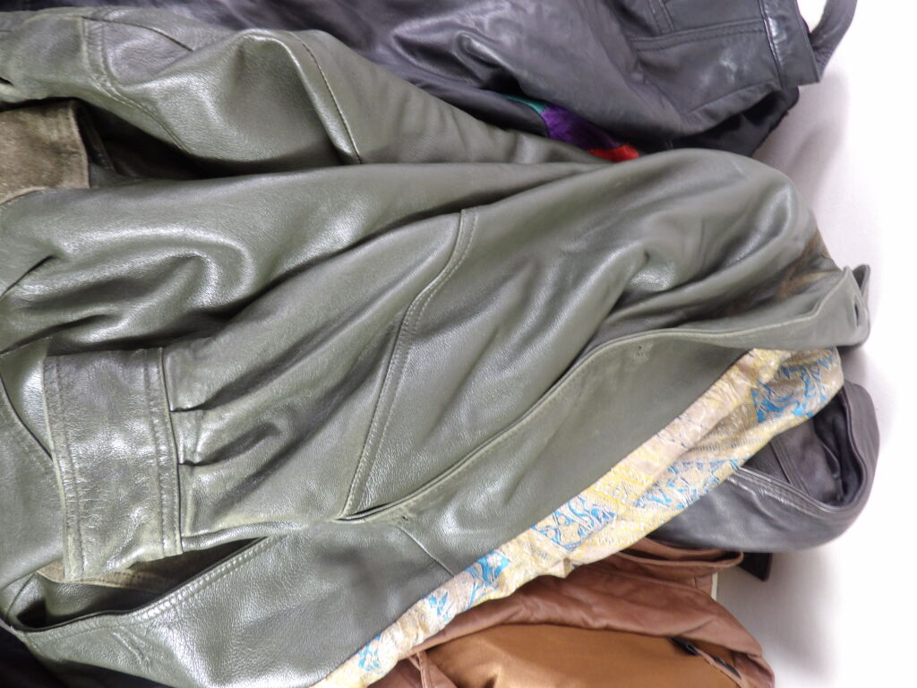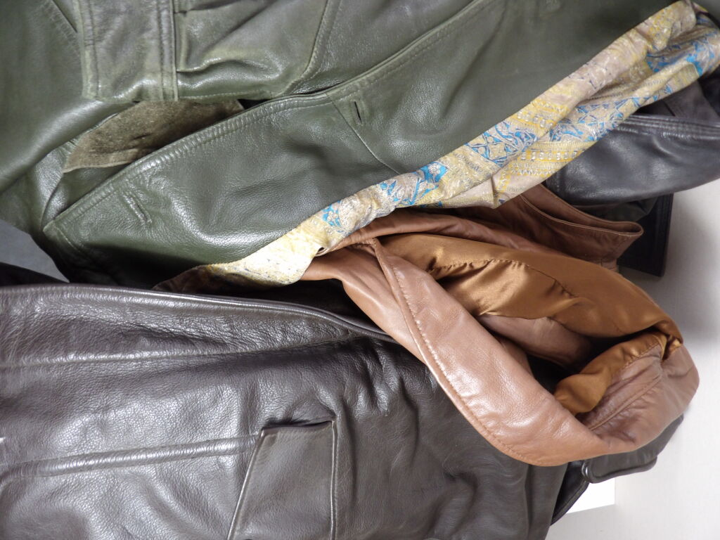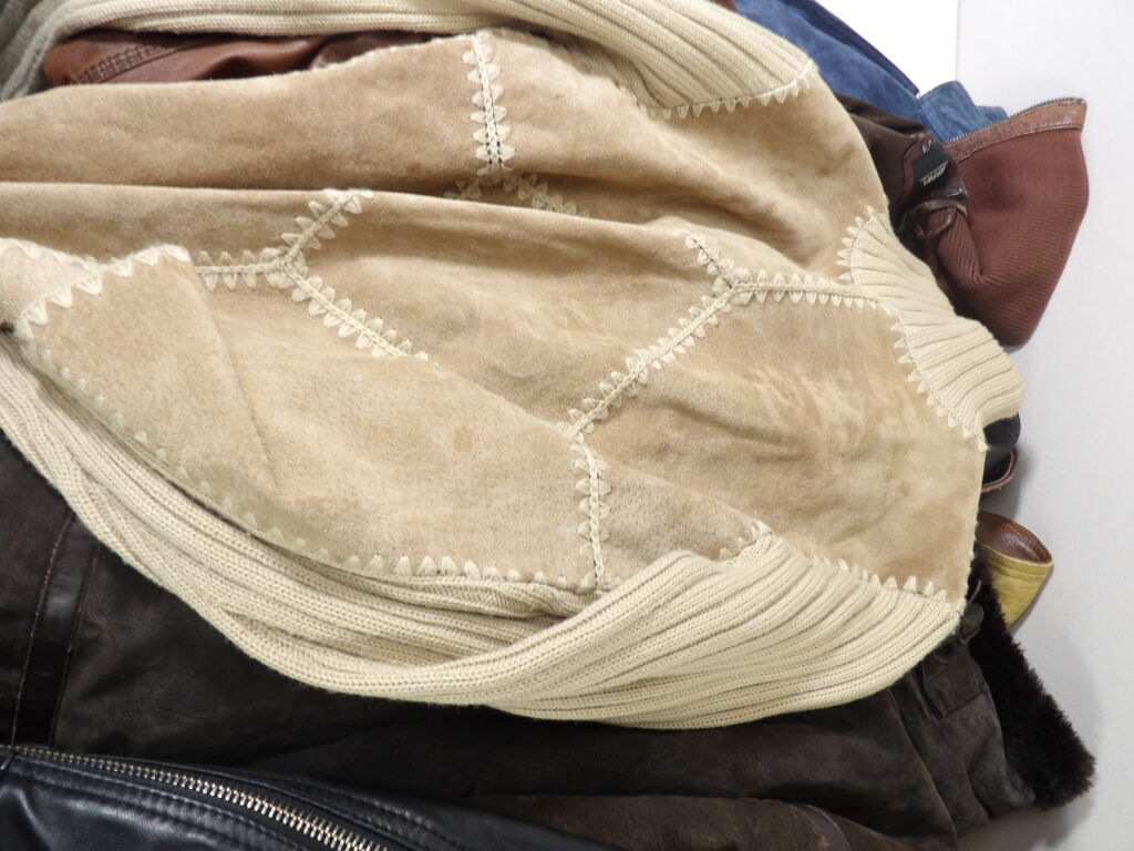 13 vêtements en cuir d'occasion divers états divers tailles, divers marques dont Mango...