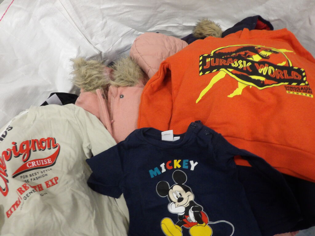 Palette de 500 vêtements ENFANT principalement d'occasion - ATTENTION ce lot est d'occasion tous états et contient divers gammes donc de l'entrée type KIABI aussi.