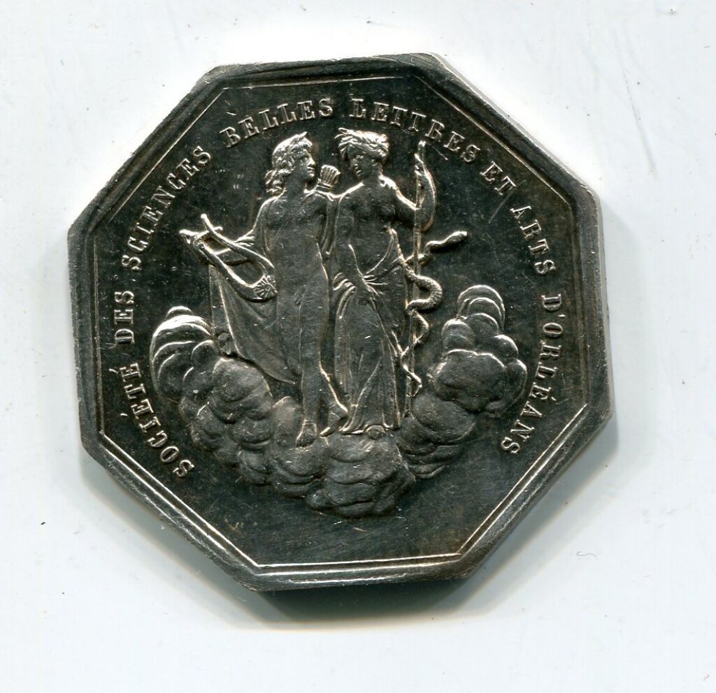 ARGENT - 2e EMPIRE / 3e REPUBLIQUE 1851 - SOCIETE ROYALE des SCIENCES, BELLES LETTRES et ARTS D'ORLEANS - jeton octogonal 30,5 mm - 13,13 gr -