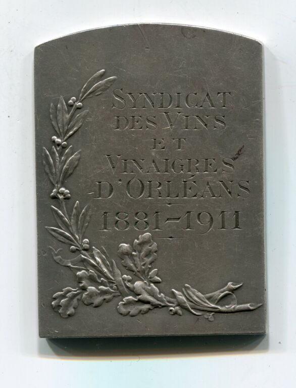 ARGENT - 30 ANS d'appartenance au SYNDICATS des VINS et VINAIGRES D'ORLEANS 1881 / 1911 - Plaque de récompense en argent, rare en argent, non pas en bronze argenté comme habituellement - ATTRIBUEE AU VINAIGRIER SEJOURNE-BARUE.