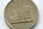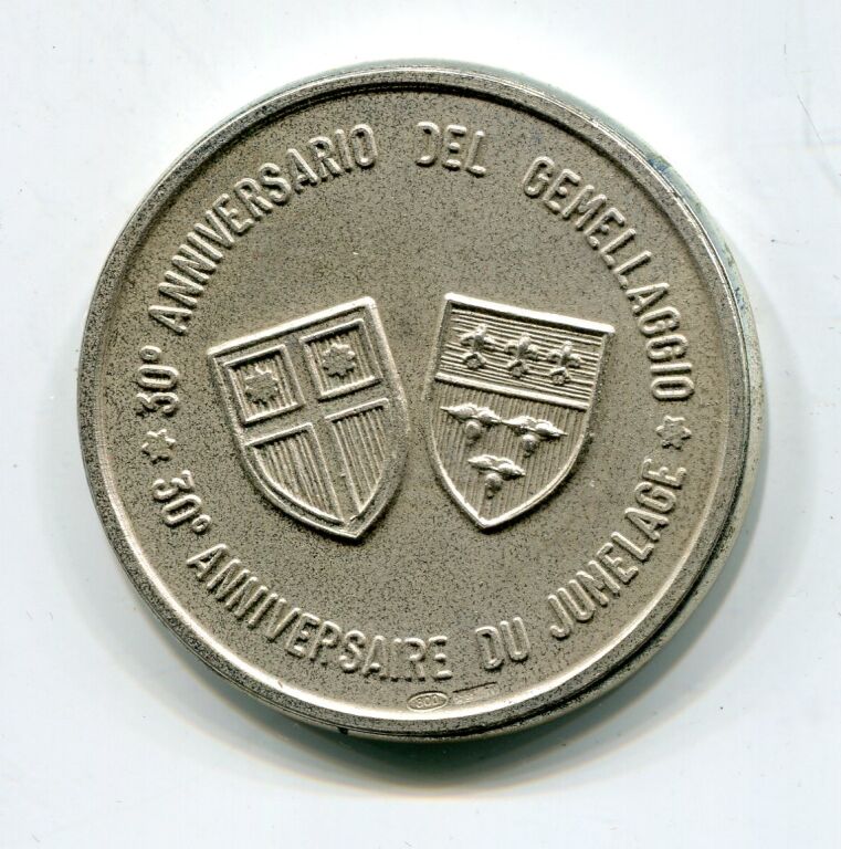 Médaille commémorative 39,7 mm bilingue italien-français blasons des villes, revers 1959-1989 monument de Trévise. - poinçon argent 800 millièmes - 33,52 grammes.