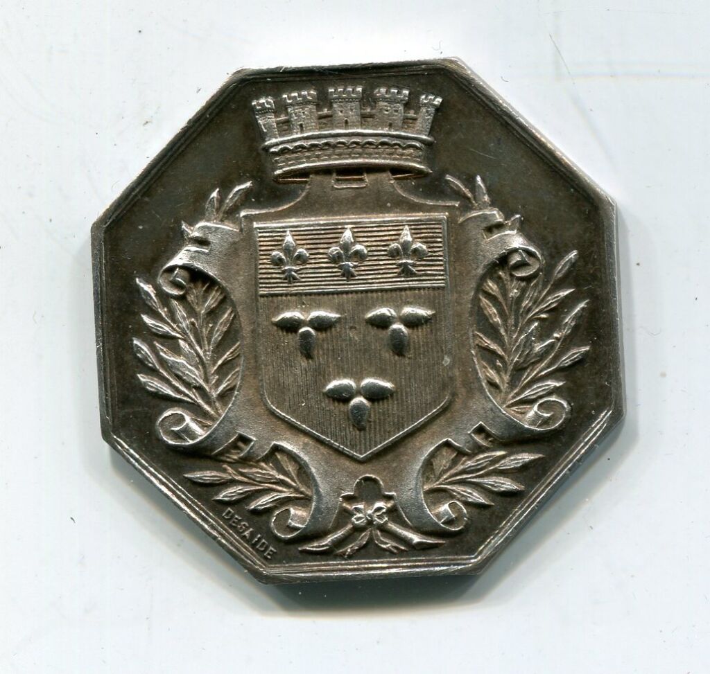 3e République, BLASON de ville couronné entre 2 palmes signé DESAIDE.