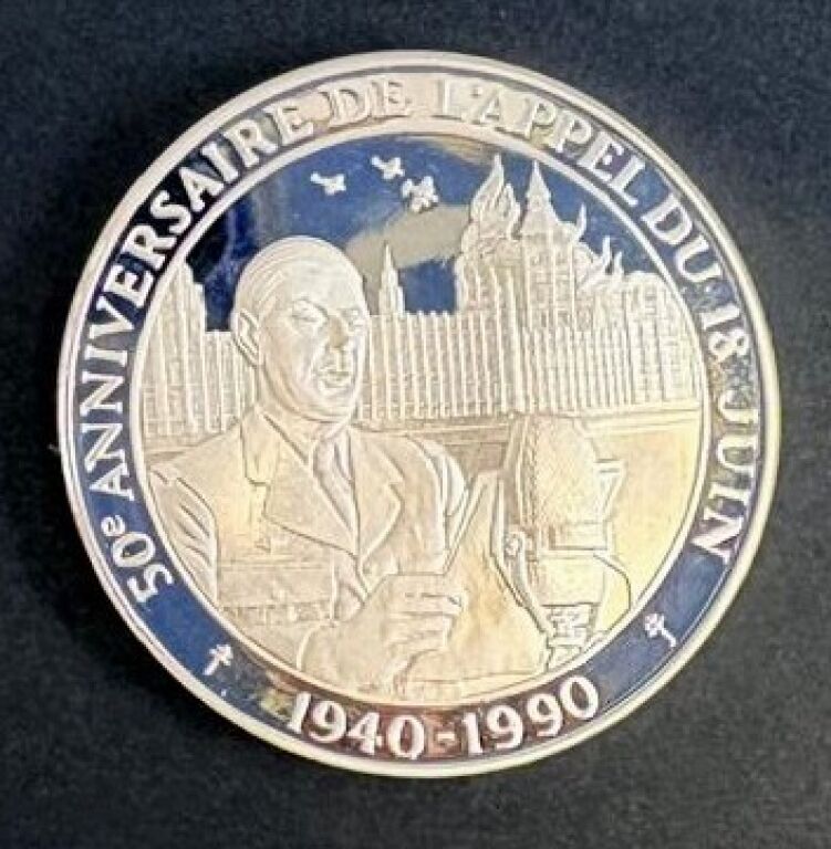 ARGENT - "CENTENAIRE de la NAISSANCE de CHARLES de GAULLE 1890-1990 " et " 50e ANNIVERSAIRE de L' APPEL de 18 JUIN 1940 BBC : LONDRES ".
