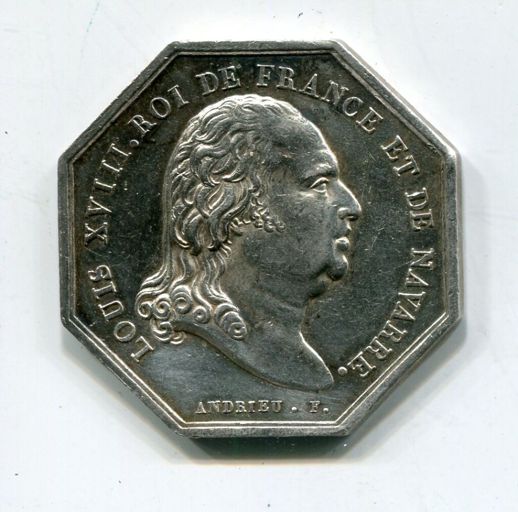 Jeton octogonal 31,5 mm - 12,13 grammes - L/A n° 1633 b var - TTB.