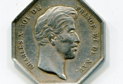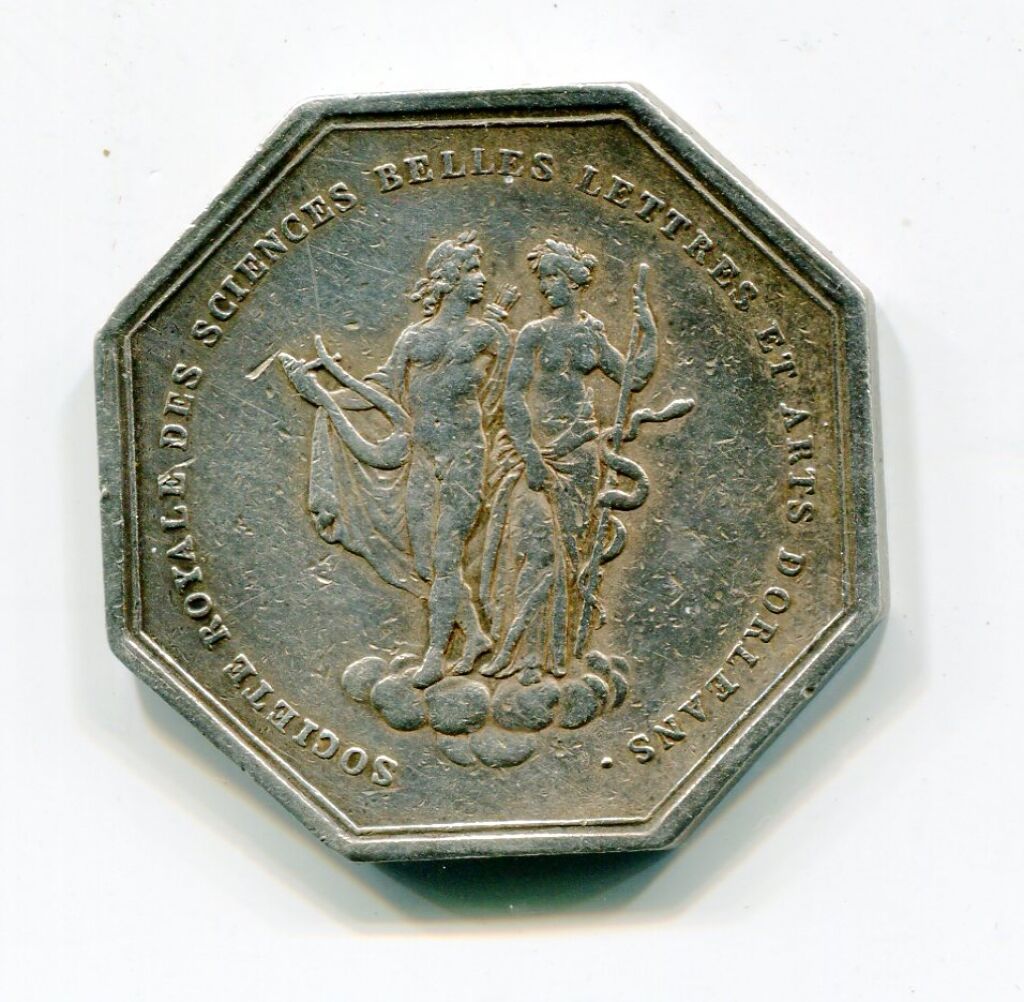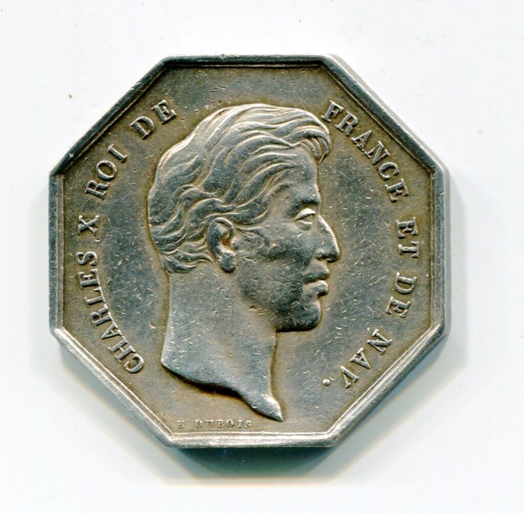 ARGENT - CHARLES X au type 1 - SOCIETE ROYALE des SCIENCES, BELLES LETTRES et ARTS D'ORLEANS - jeton octogonal 31 mm - 12,70 grammes - L/A n° 624.