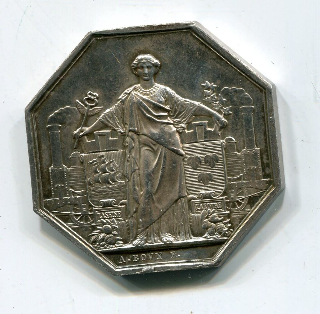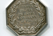 Revers : titre en centre d'une couronne de chêne et d'olivier. Jeton octogonal 36,5 mm.