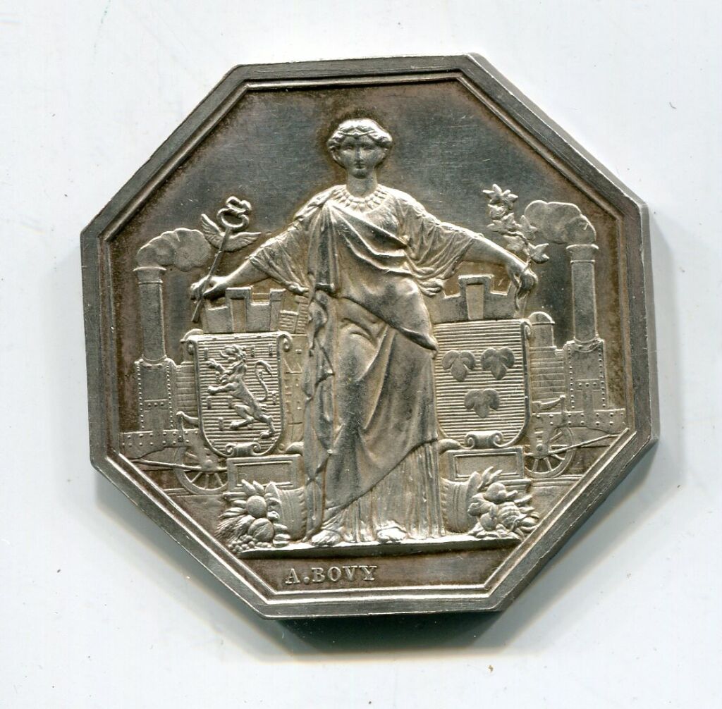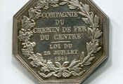 Revers : titre en centre d'une couronne de chêne et d'olivier. Jeton octogonal 36,5 mm.