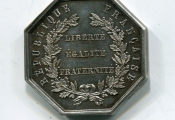 Revers : " République Française " ; en centre dans une couronne de feuilles de chêne "Liberté, Egalite, Fraternité " - sur la tranche poinçons argent et corne.