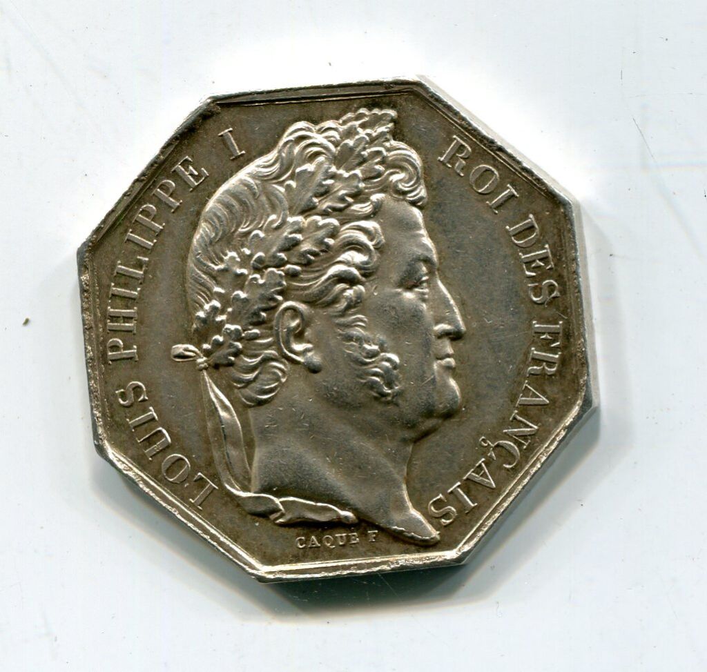 Jeton Octogonal 30 mm. - 12,60 g - sur la tranche poinçons argent et proue de navire (1842-1845) - L/A n° 1954 - TTB