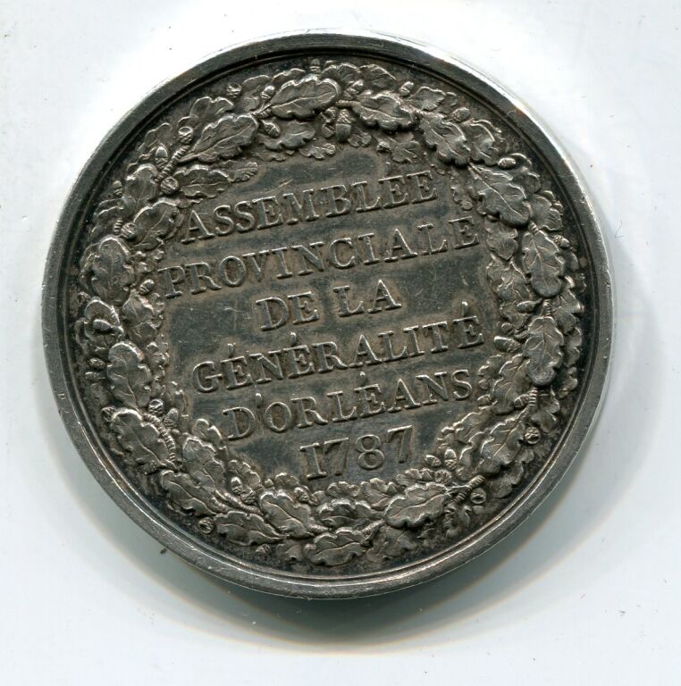 ARGENT - LOUIS XVI - " ASSEMBLEE PROVINCIALE de la GENERALITE D'ORLEANS 1787 - Grande médaille en argent 42 mm,.