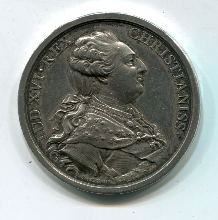 LUD . XVI . REX CHRISTIANISS, buste habillé avec manteau d'hermine fleurdelisé du Roi, aux cheveux noués d'un ruban, haut relief profil à droite.