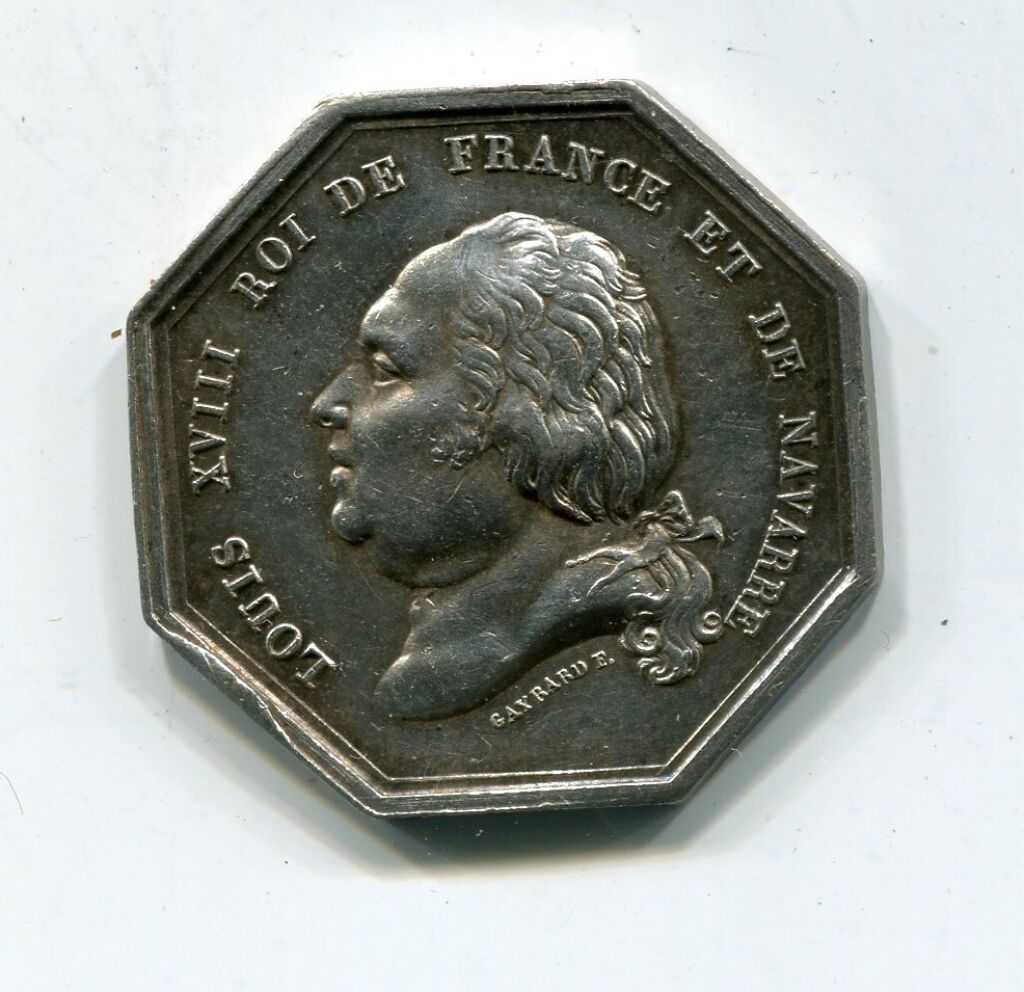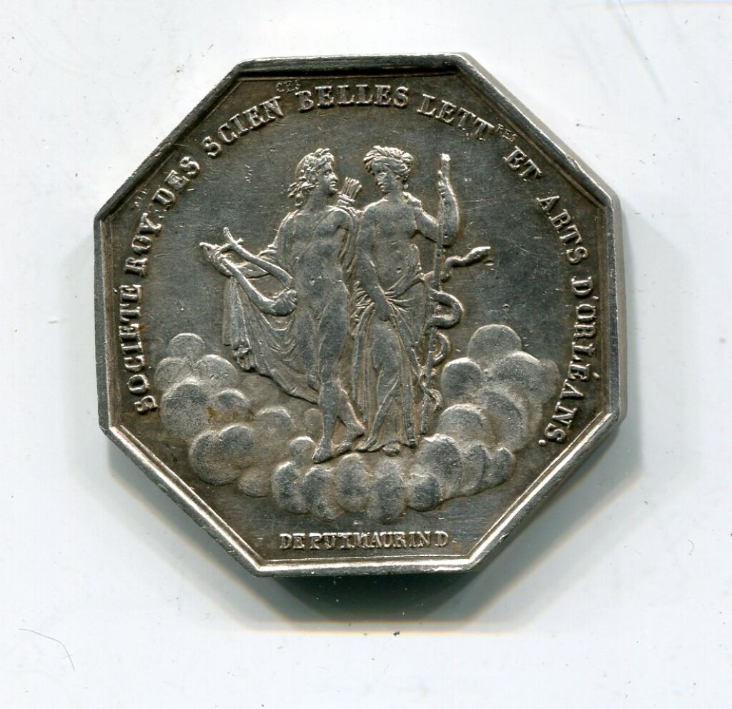 ARGENT - LOUIX XVIII - SOCIETE ROYALE des SCIENCES, BELLES LETTRES et ARTS D'ORLEANS - jeton octogonal 30 mm - 11,53 grammes - L/A n° 622.