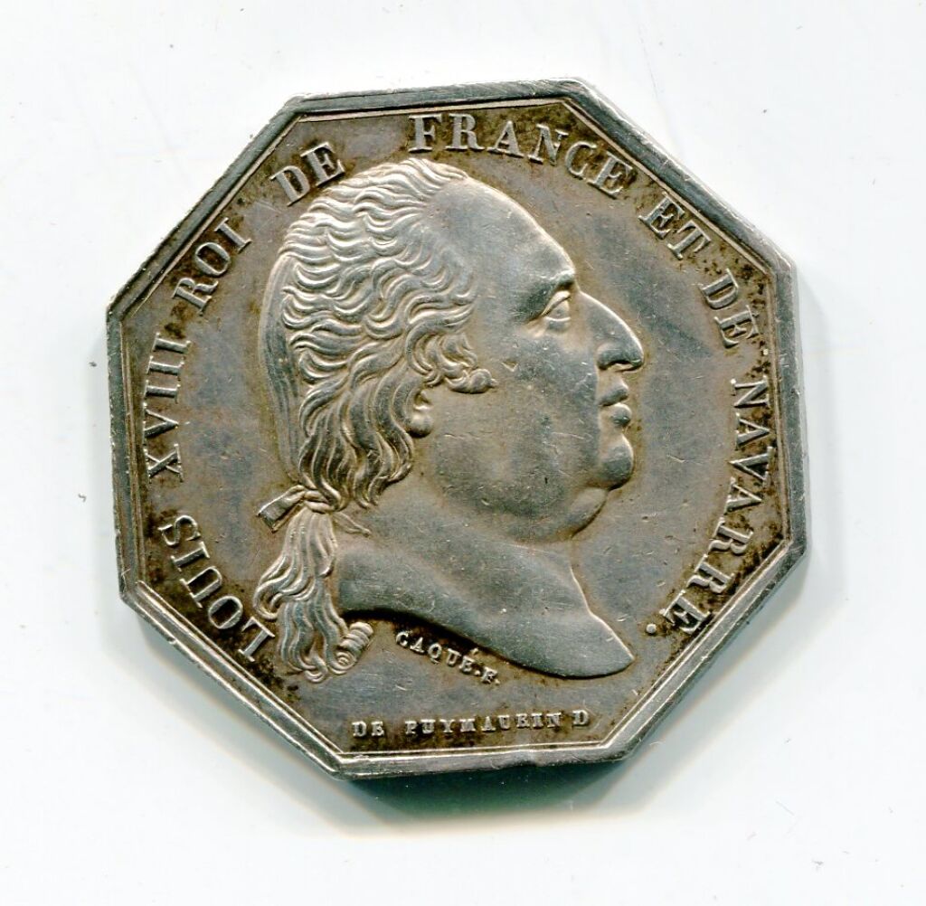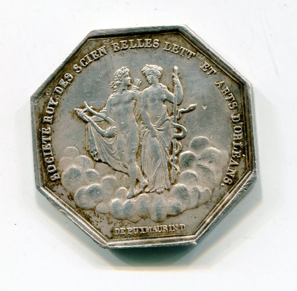 ARGENT - LOUIX XVIII - SOCIETE ROYALE des SCIENCES, BELLES LETTRES et ARTS D'ORLEANS - jeton octogonal 30 mm - 12,64 grammes - L/A n° 623.