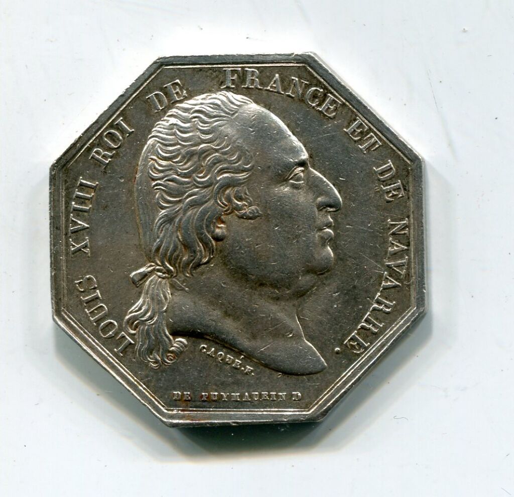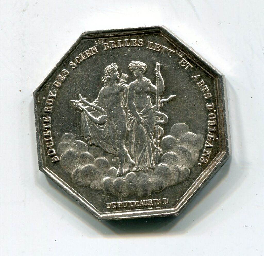 ARGENT - LOUIX XVIII - SOCIETE ROYALE des SCIENCES, BELLES LETTRES et ARTS D'ORLEANS - jeton octogonal 30 mm - 12,73 grammes - L/A n° 623.