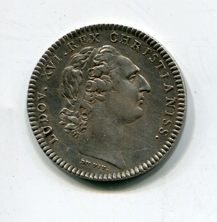 ARGENT - NOTAIRES D'ORLEANS - LOUIS XVI - " LUDOV . XVI . REX CHRISTIANISS", buste nu du roi cheveux noués par un bandeau, profil à droite, signé DU VIV sous le col.