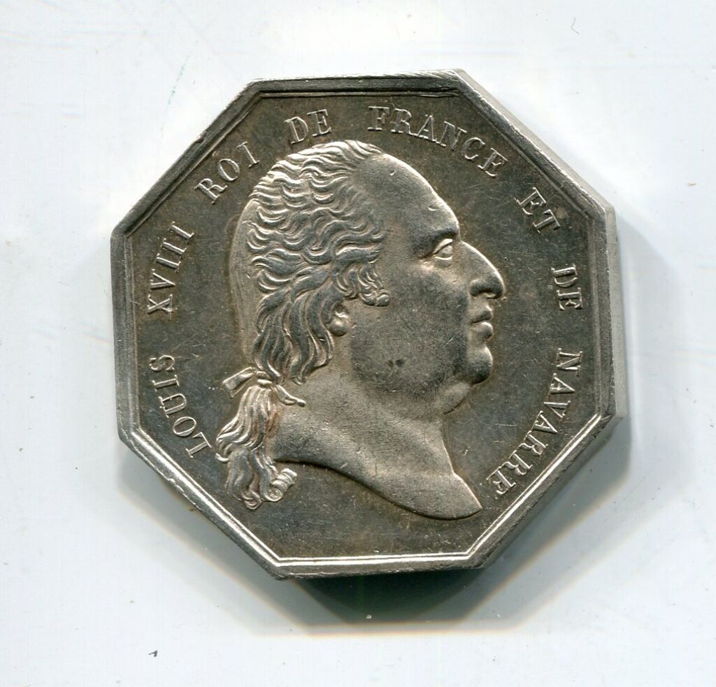ARGENT - NOTAIRES D'ORLEANS - LOUIS XVIII ROI de FRANCE et de NAVARRE, buste nu profil à droite. RARE VARIANTE SANS SIGNATURES SOUS LE BUSTE.