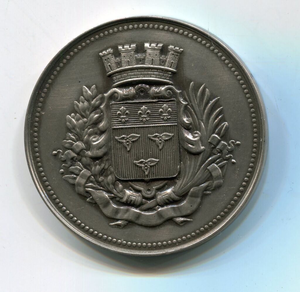 armes de la ville couronnées entre 2 palmes - revers : en centre d'une couronne de bouquets d'olivier, légende et espace pour attribution. - poinçon corne L/A n° 1401 b.