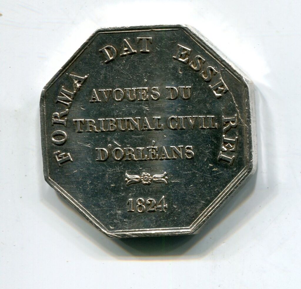 ARGENT - ORLEANS - HOMMES de LOIS - LOUIS XVIII, ROI de FRANCE et DE NAVARRE, buste nu profil à gauche, signé GAYRARD - Revers : en légende circulaire "Forma Dat Esse Rai" - en centre AVOUES du TRIBUNAL CIVIL D'ORLEANS 1824 -