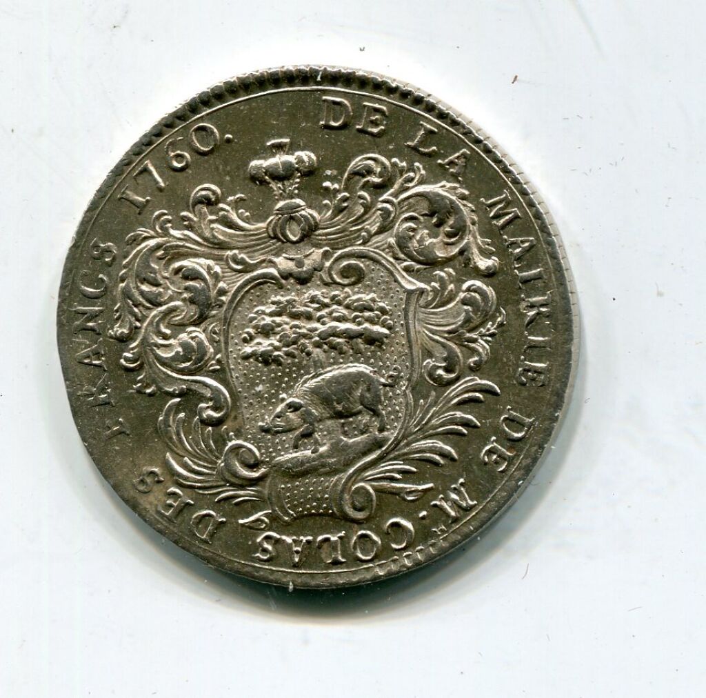 ARGENT - ORLEANS - JETON de MAIRE - " DE LA MAIRIE DE M. COLAS DES FRANCS ", ses armes - Revers : ME VINDICE LILIA FLORENT en légende circulaire. AURELLIA à l'exergue - En centre la Pucelle assise de face tenant épée de la main droite, la gauche appuyée sur le blason d'Orléans - Signé ID.V. à droite -