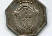 légende circulaire en caractères plus petits. présence du gouvernail après les drapeaux ( gouvernail présent sur les jetons ronds mais pas sur les octogonaux ) - tranche lisse sans poinçon.