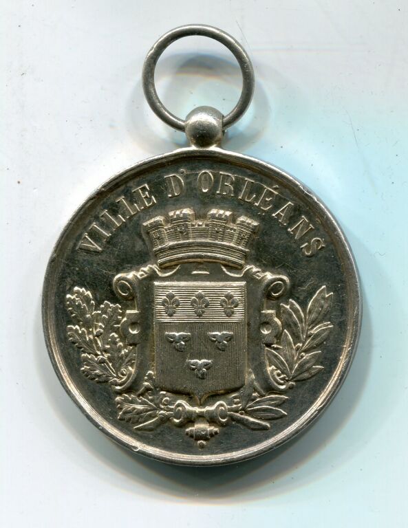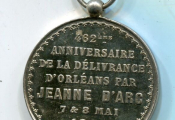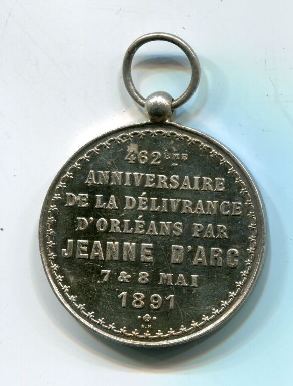 ARGENT - " VILLE D'ORLEANS / 462e ANNIVERSAIRE de la DELIVRANCE D'ORLEANS par JEANNE D'ARC 7 & 8 MAI 1891 " médaille commémorative avec bélière.