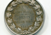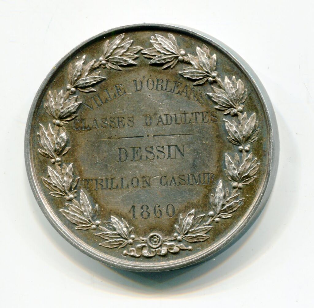 ARGENT - " VILLE D'ORLEANS, CLASSES D'ADULTES - DESSIN " -" NAPOLEON III EMPEREUR ", buste par Barre, tête nu profil à gauche. - attribution au revers : dans une couronne de bouquets de feuilles de laurier " TRILLON Casimir 1860 " -
