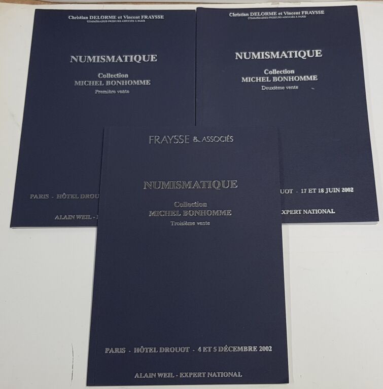 BIBLIOTHEQUE - COLLECTION MICHEL BONHOMME. - TROIS CATALOGUES de la prestigieuse vente aux enchères publiques organisée à l' Hôtel Drouet de Paris 17 & 18 juin 2002.