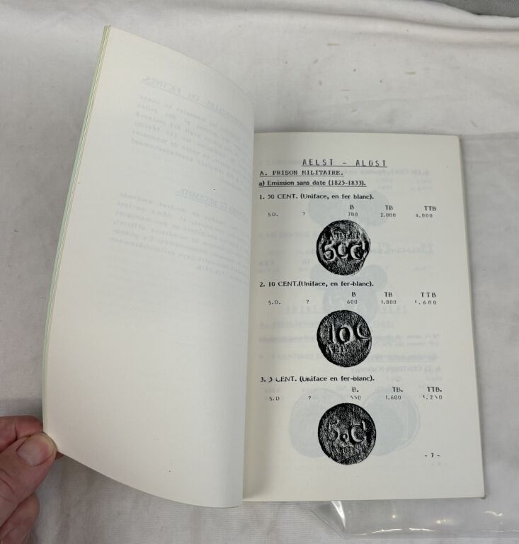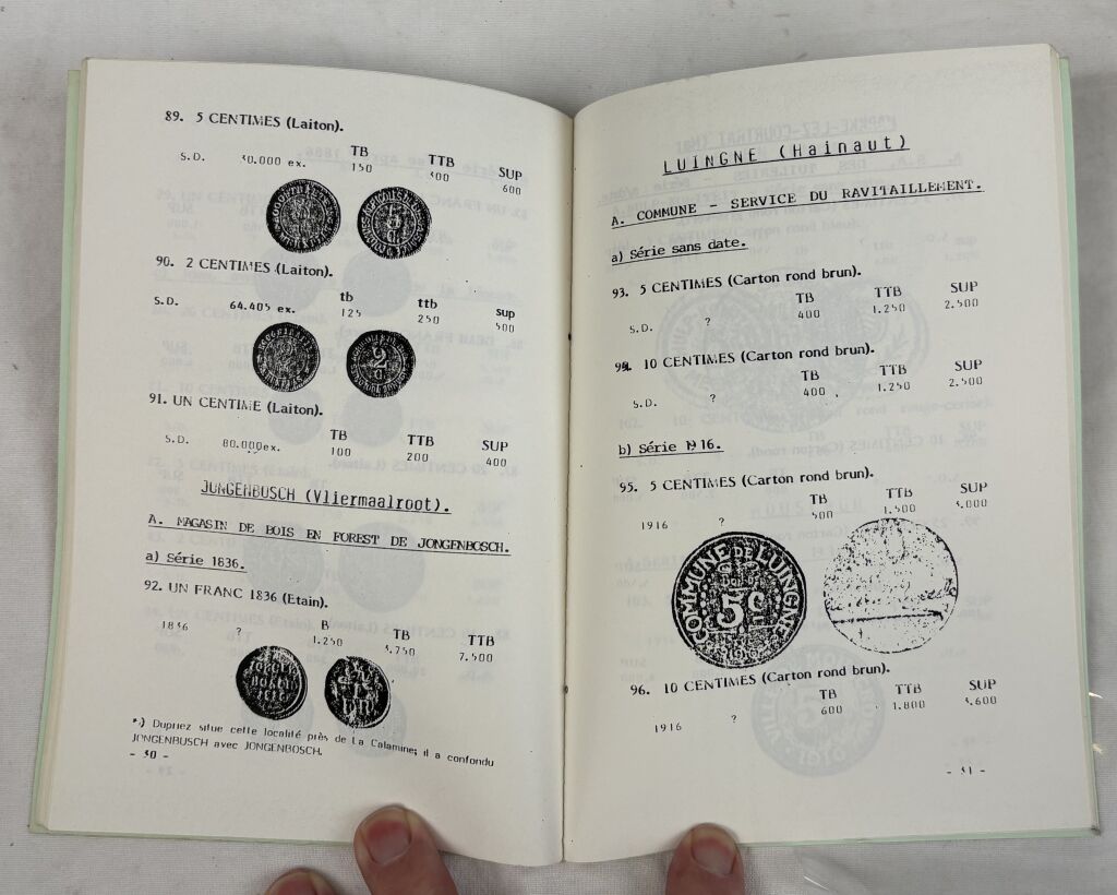 BIBLIOTHEQUE - "MONNAIES CONVENTIONNELLES et MONNAIES de NECESSITE BELGES 1815 à 1940 ", par Jean René de MEY 1984 - Répertoire et cote en francs belges. 53 pages 21 x 14,5 cm - avec reproduction des monnaies répertoriées.