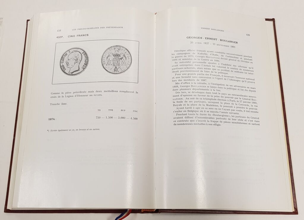 Ouvrage intéressant pour ses commentaires monétaires (histoire, faux répertoriés d' époque ou contemporains, notes diverses) - MAIS EGALEMENT pour son répertoire des MONNAIES de SIEGE lors de la période des révoltes de la Convention et son répertoire DES PSEUDO-MONNAIES des PRETENDANTS AU GOUVERNEMNT de la France qui frappèrent monnaies à l' usage de leurs partisans à titre de propagande : Napoléon II, Louis XVIII en exil à Gand, Henri V fils du Duc de Berry Duc de Bordeaux, Léon Gambetta, Adolphe Thiers, Mac Mahon, Général Boulanger, Napoléon IV ...