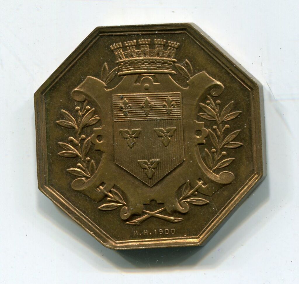 3e République, BLASON de ville couronné entre 2 palmes signé H.H. 1900.