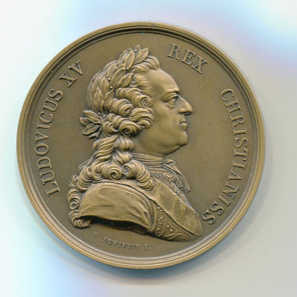 Frappe postérieure en bronze poinçon corne, portrait du roi modifié par Duvivier d'après le premier portrait de 1767 de Röettiers.