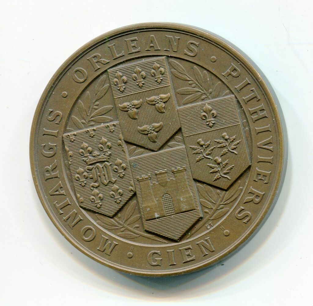 " REPUBLIQUE FRANCAISE", La république, coiffée du bonnet phrygien, tête laurée, profil à droite - Revers : MONTARGIS - ORLEANS - PITHIVIERS - GIEN, armoiries des 4 grandes villes du Loiret - Grande médaille commémorative 45 mm, poinçon bronze.