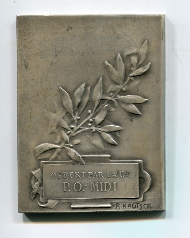 " CHEMIN de FER de PARIS à ORLEANS " - PLAQUE D'HOMMAGE ou D'ANCIENNETE classe argent en bronze argenté, 69 x 51 mm, 91,07 grammes -