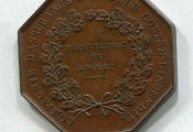 à l'exergue : MDCCC XX - (1820 ) - œuvre signée Depaulis. - jeton octogonal 34 mm - CUIVRE 17,22 grammes - L/A n° 1887. - TTB