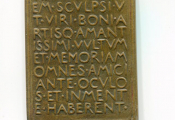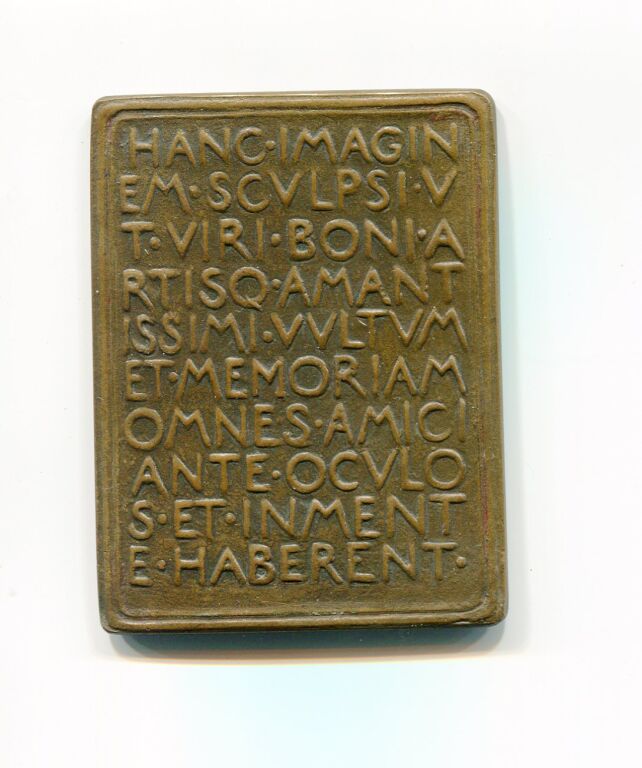 Revers, texte 10 lignes en latin : hanc. imagine. scvlpsi. vt. viri. bonia. artisq. amantissimi. vvltvmet. memoriam. omnes. amici. ante. ocvlos.et. inmente. haberent ".