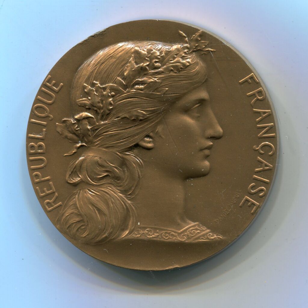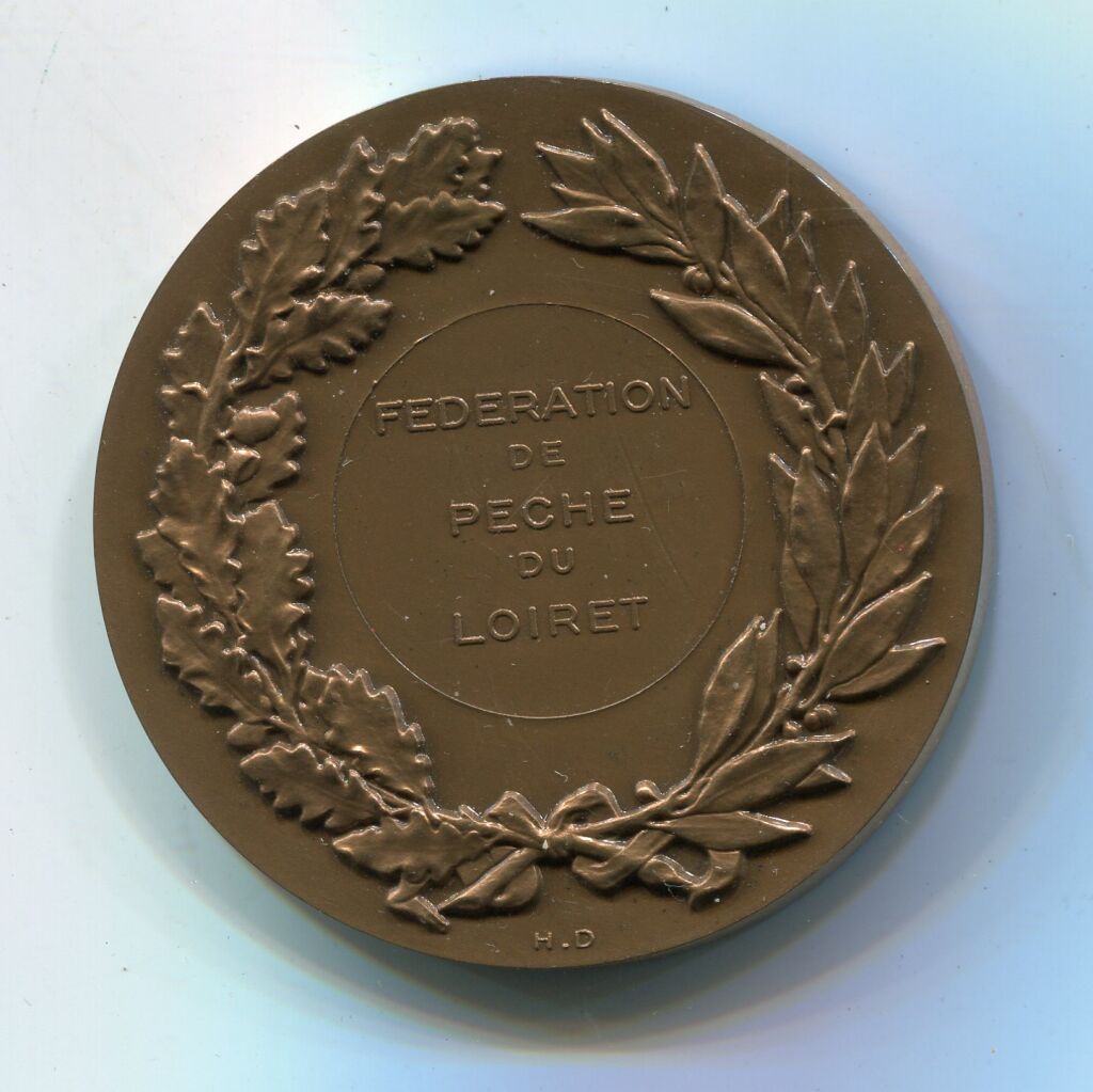 " FEDERATION de PECHE du LOIRET " - médaille classe bronze - " REPUBLIQUE FRANCAISE ", tête de république laurée, profil à gauche, œuvre de Daniel Dupuis.