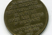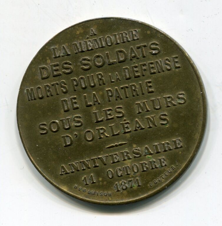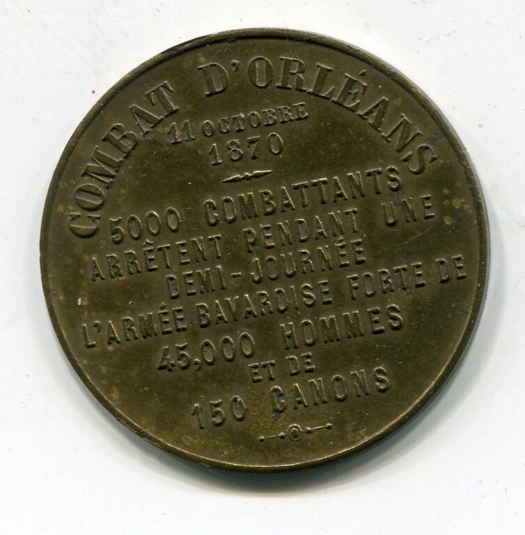 Avers : COMBAT D'ORLEANS 11 octobre 1870 " 5000 combattants arrêtent pendant une demi -journée l'armée bavaroise forte de 45,000 hommes et de 150 canons ".