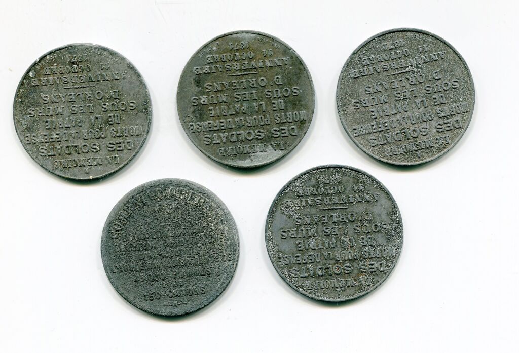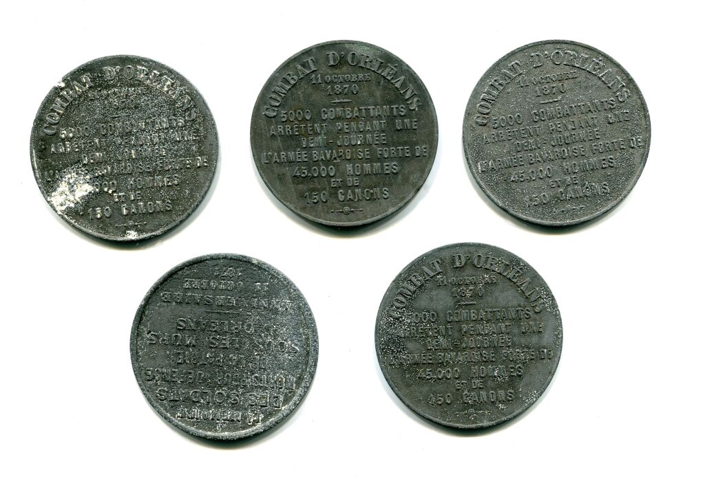 Avers : COMBAT D'ORLEANS 11 octobre 1870 " 5000 combattants arrêtent pendant une demi-journée l'armée bavaroise forte de 45,000 hommes et de 150 canons ".