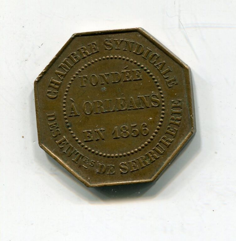 "JETON de PRESENCE" - CHAMBRE SYNDICALE des ENTREre de SERRURERIE. "FONDEE A ORLEANS en 1856 " - L/A n° 1876