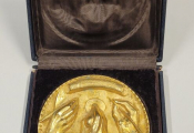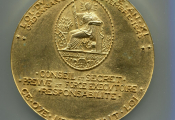 Médaille de table en bronze doré 110 mm, cinq cent trente six grammes ( 536 ).