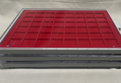 MATERIEL - BOX, de type Lindner ou Yvert & Tellier - Tiroirs empilables fonds rouges.