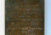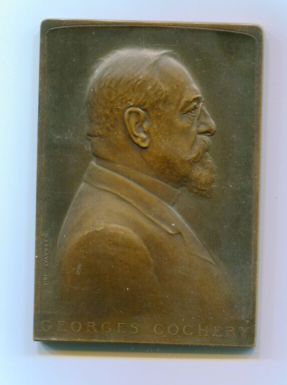 Médaille commémorative à GEORGES COCHERY - Plaque bronze 80 x 56 mm, en bronze, poinçon corne - 157 grammes - son buste profil à droite par Exbrayat.