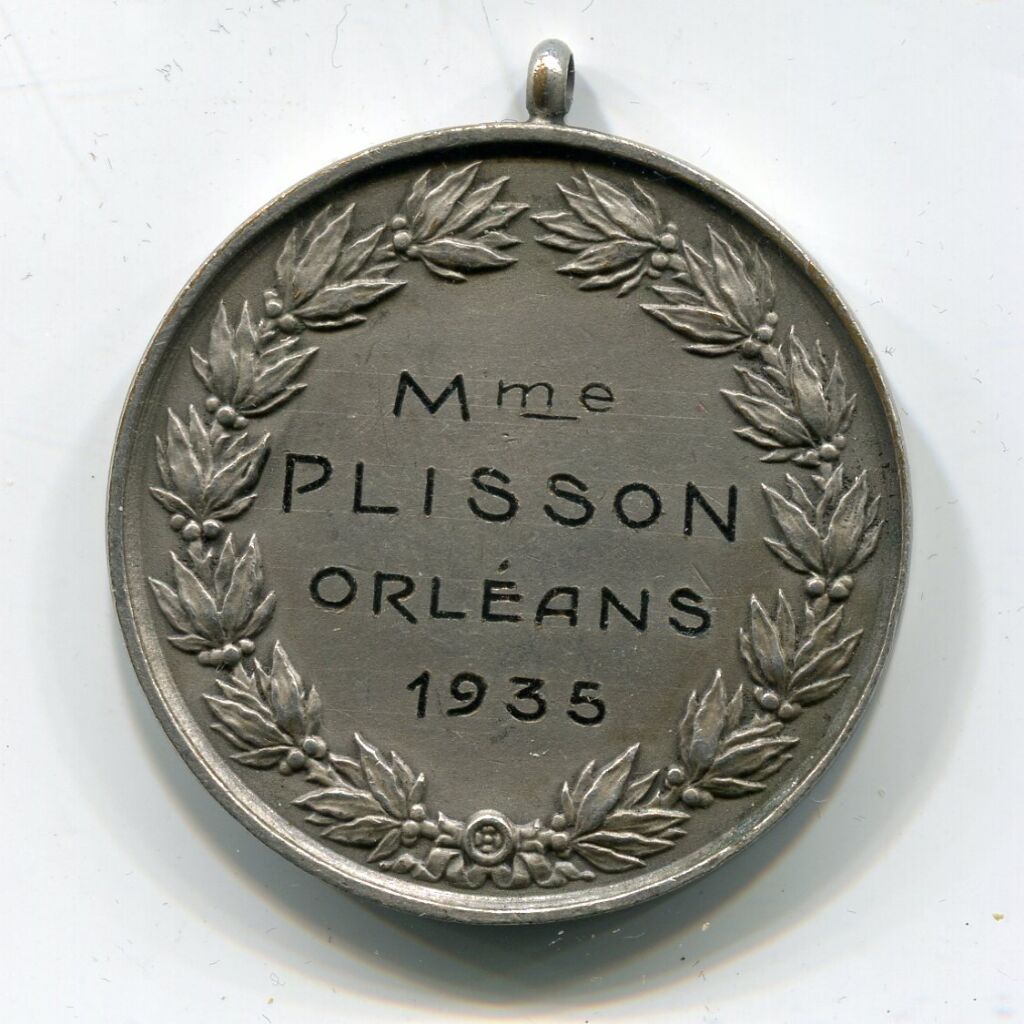 Revers : attribution en centre à Mme PLISSON - ORLEANS 1935.