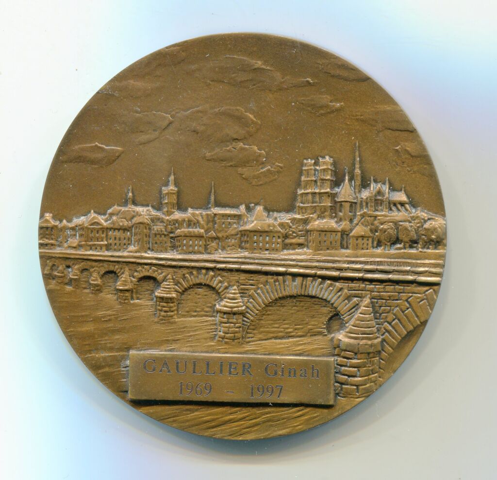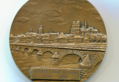 En centre blason de ville et mentions : 11257 Aumône de Ste Croix / 1678 Hôpital général / 1941 Hotel Dieu / 1969 Hôpital de la Source - Revers : vue générale de la ville d'Orléans avec le pont royal au premier plan - à l'exergue cartouche avec attribution.